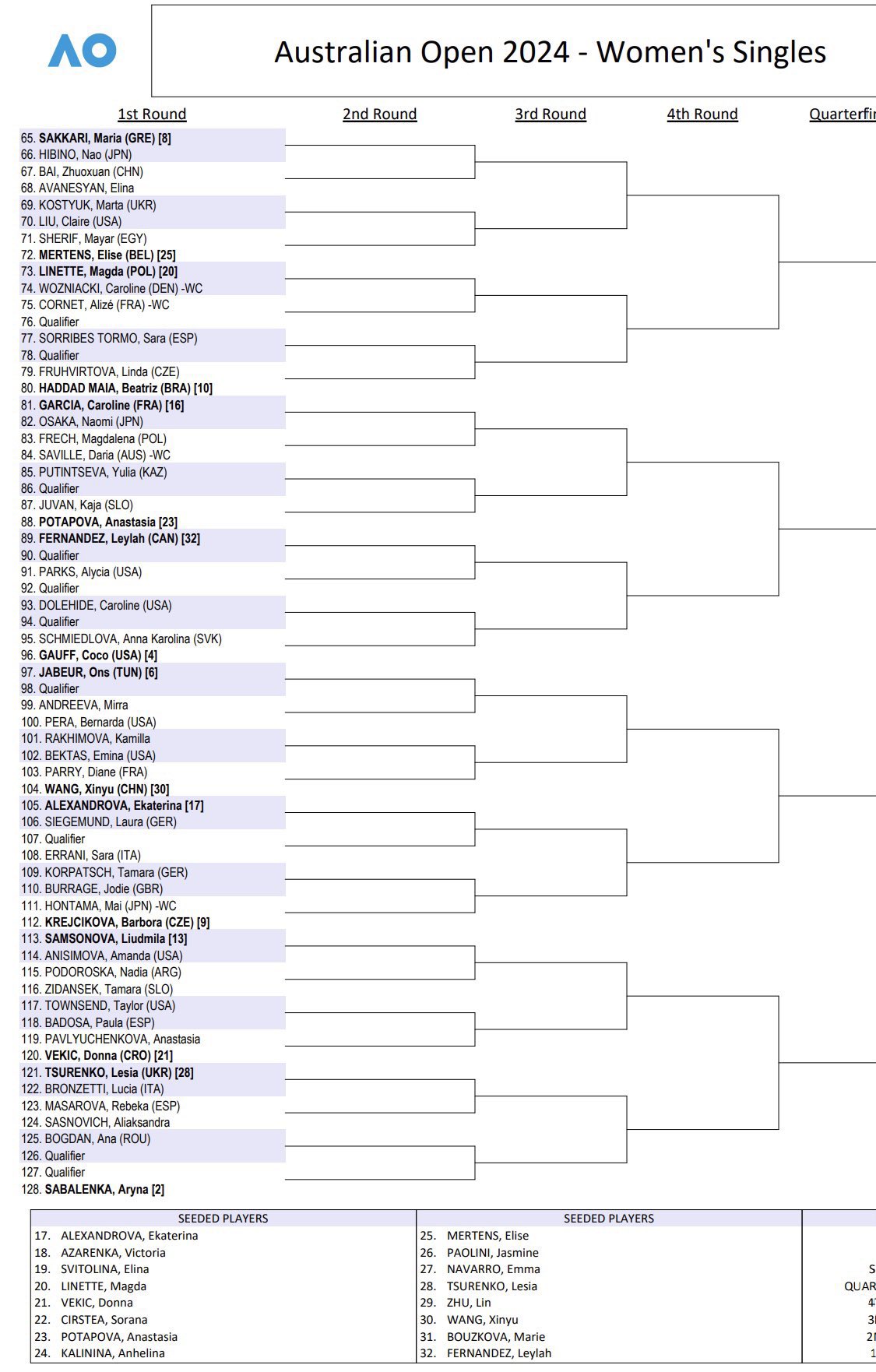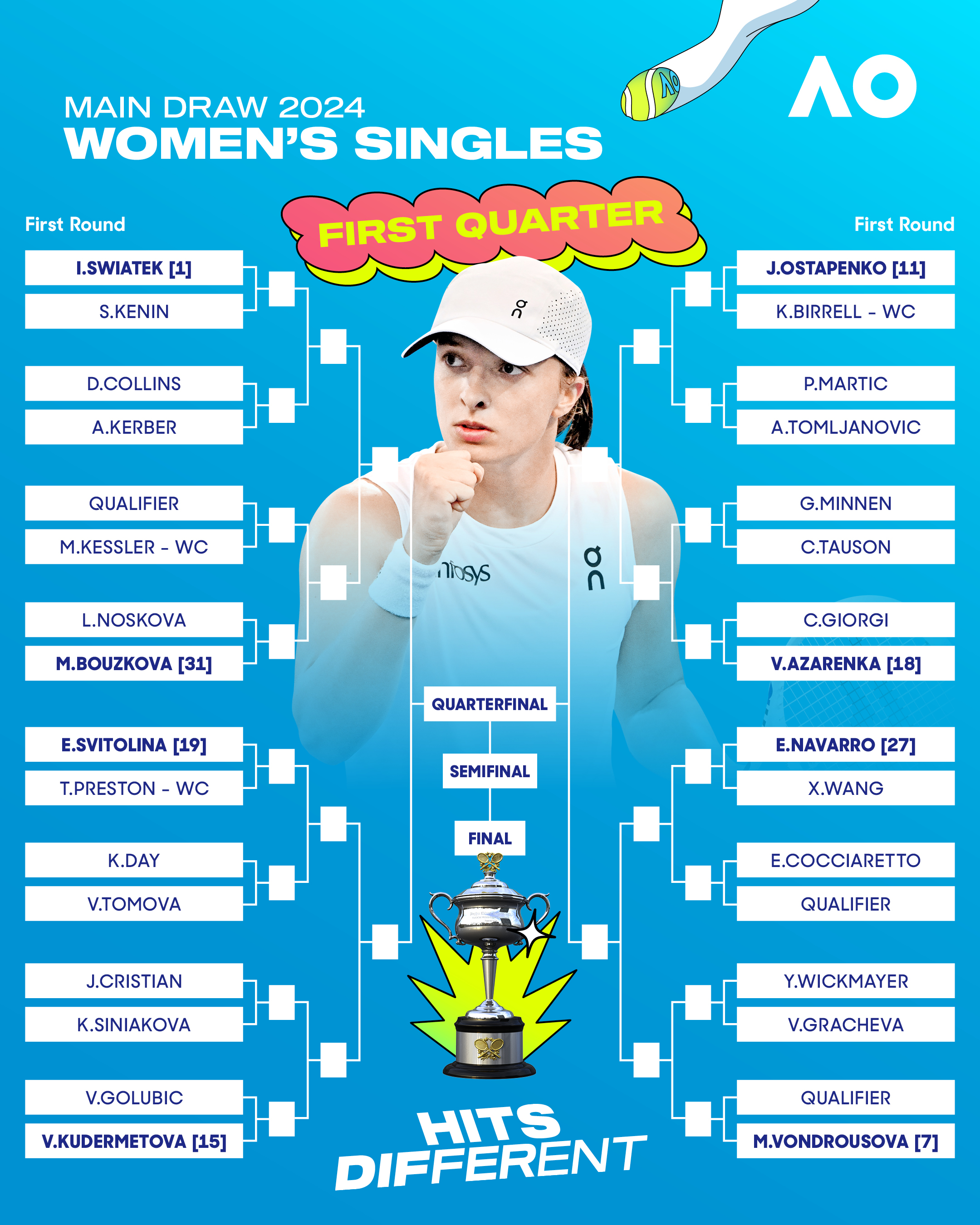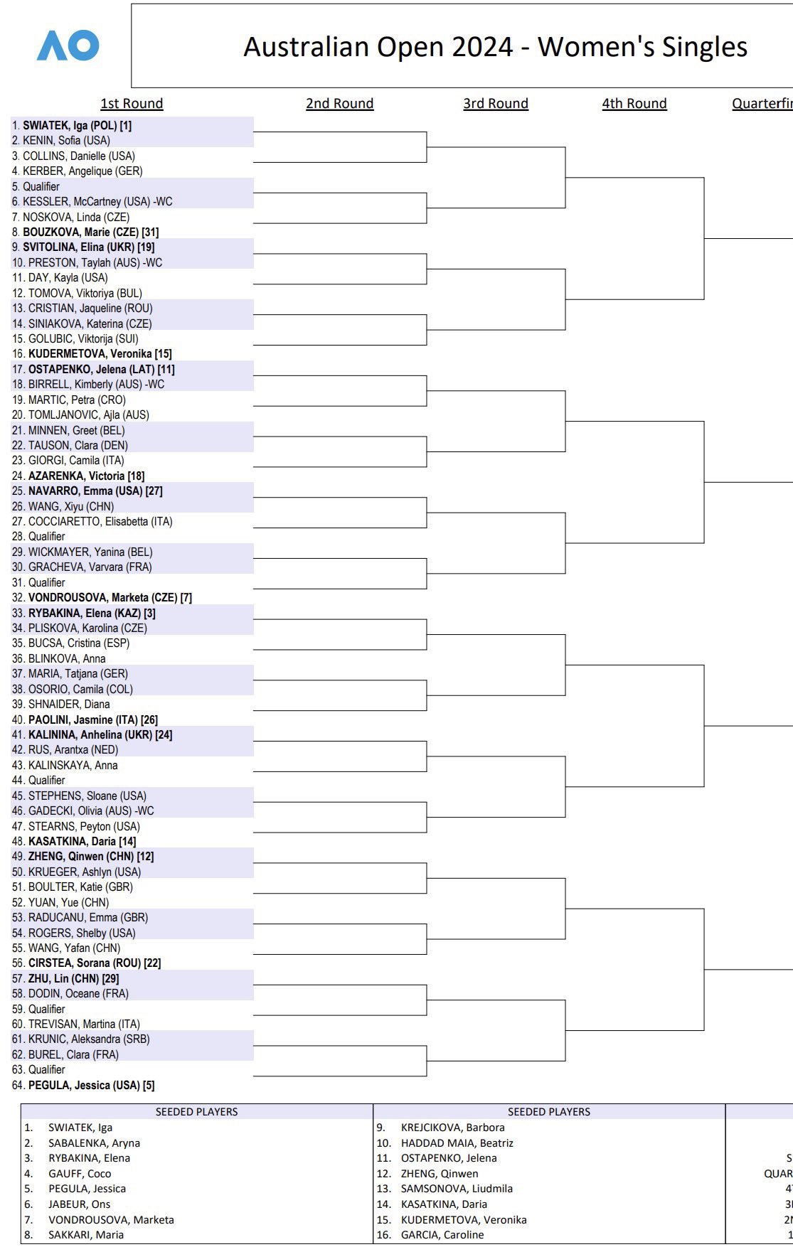 f– iga swiatek/elena rybakina/jessica pegula/qinwen zheng